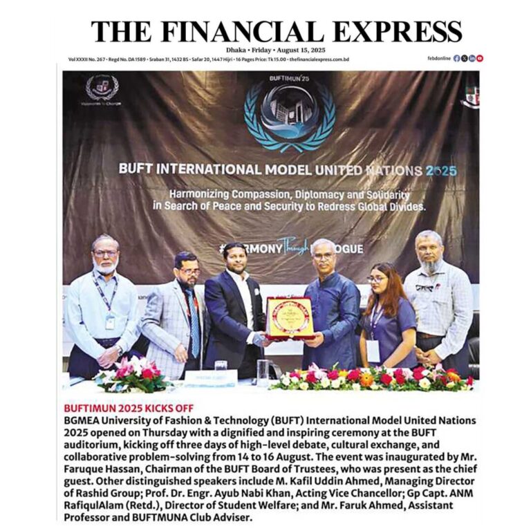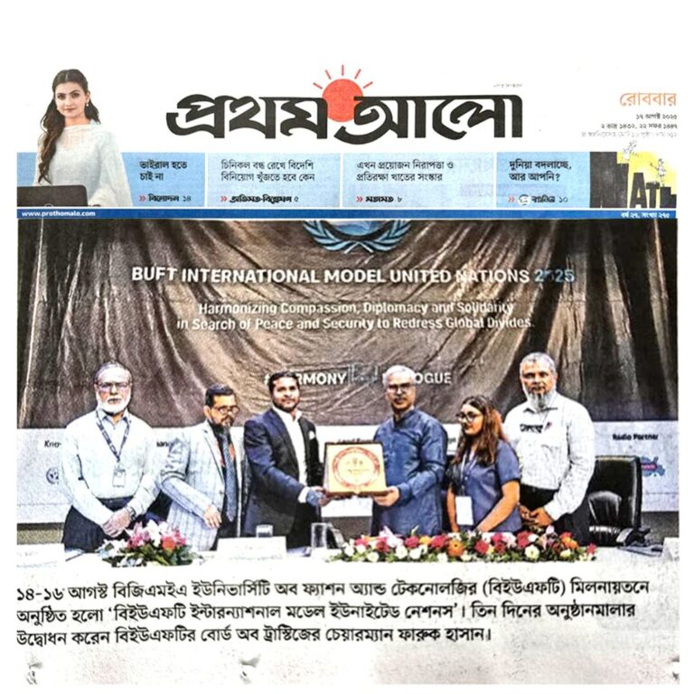 BUFTMUNA draws a diverse group of informed students from BGMEA University of Fashion and Technology. Our conferences are hands-on learning opportunities that provide students with a better understanding of how the United Nations works and a forum to hone skills in diplomacy, negotiation, critical thinking, compromise, public speaking, writing, and research.